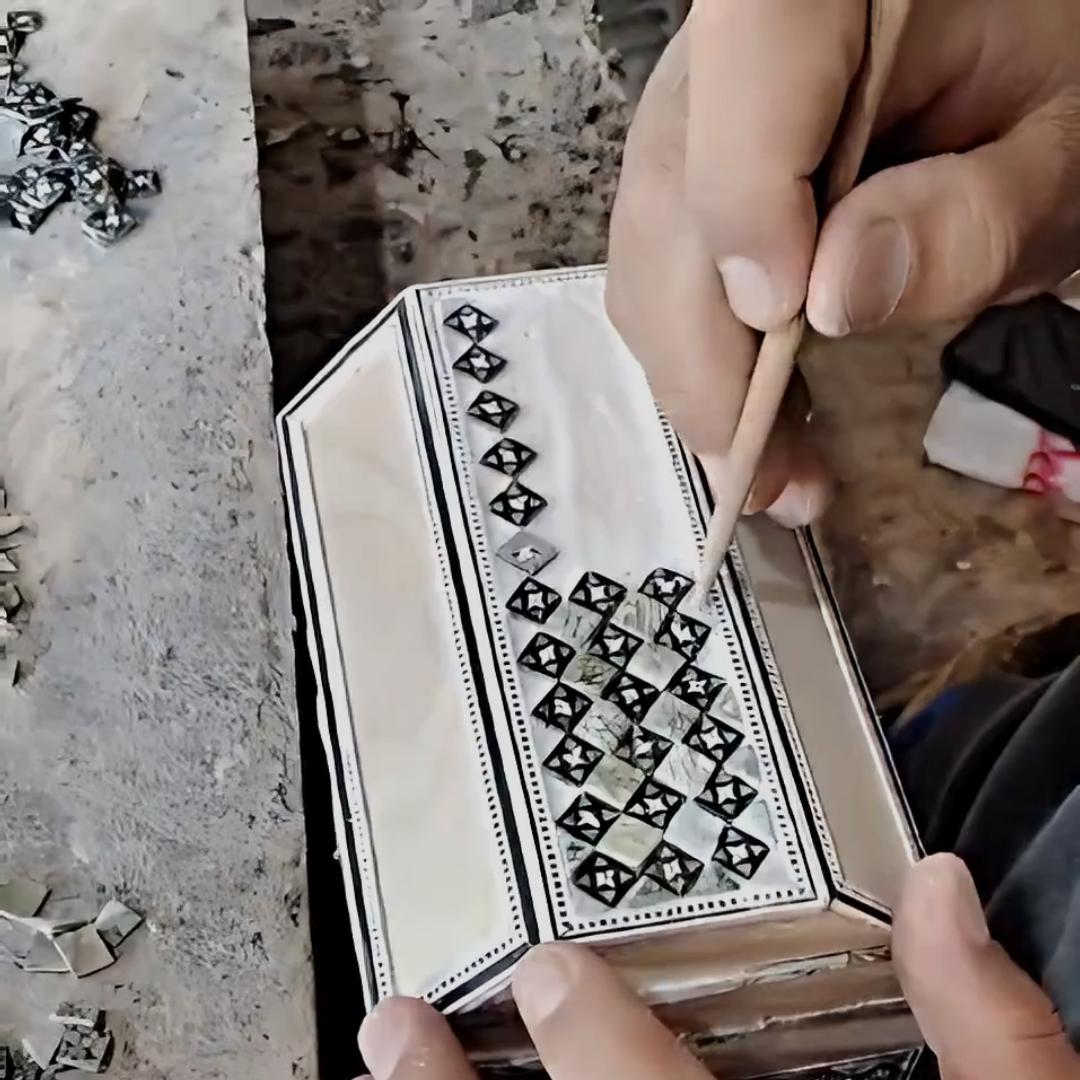 Handcrafted in Cairo Egypt with generations of expertise, The Chest combines natural wood and unique mother-of-pearl inlays, offering a one-of-a-kind heirloom for your cherished timepiece.